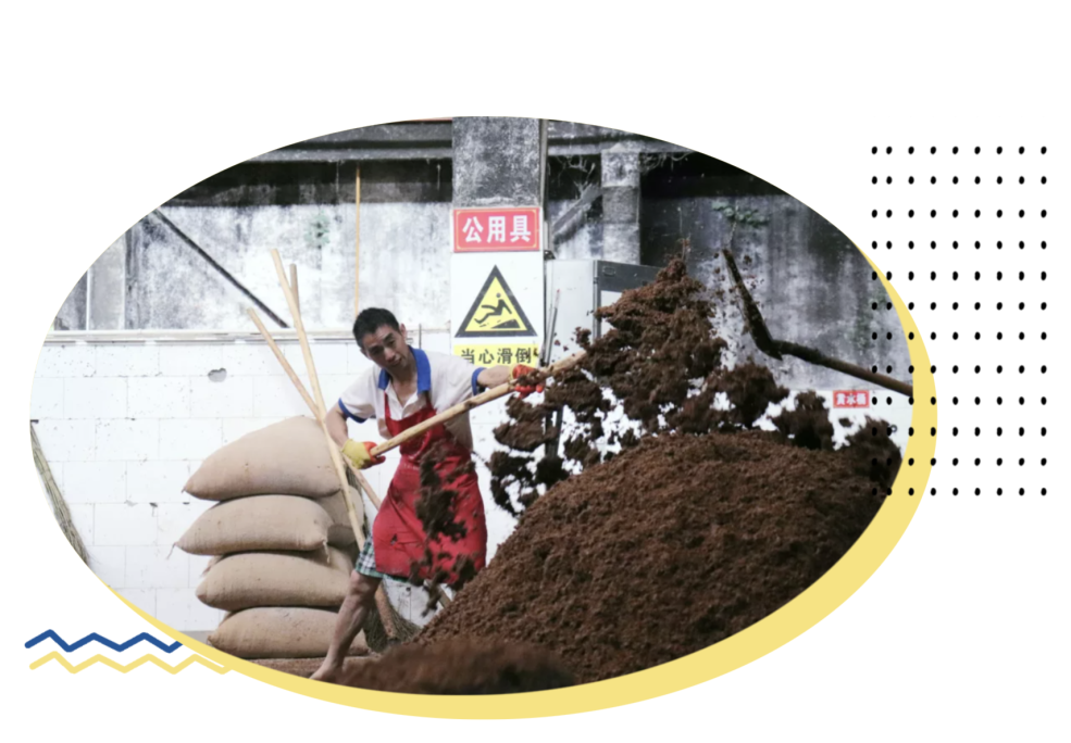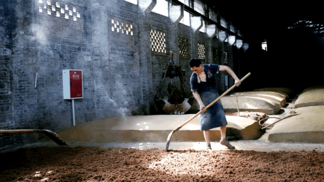 ▲ 吃曲后收堆,待溫度合適入窖發(fā)酵