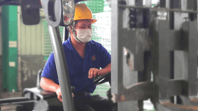 ▲ 叉車(chē)技能初賽中瓶口碼氣球項目
