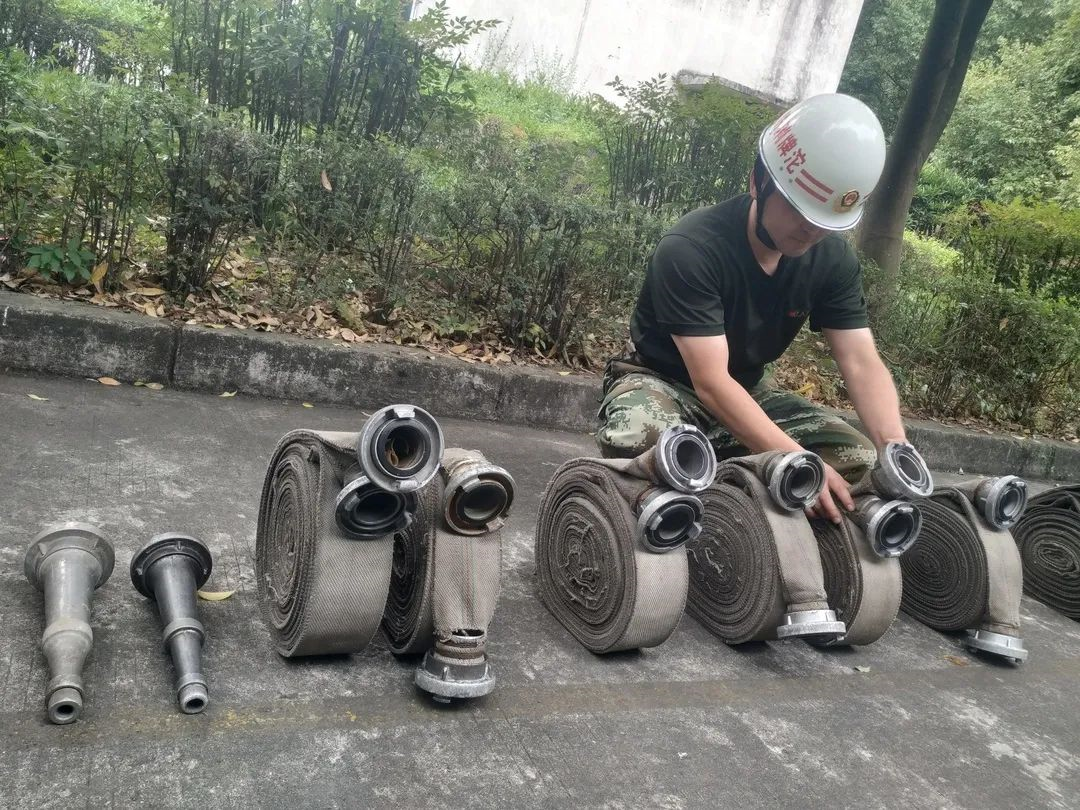▲ 消防隊隊長(cháng)梁勁松、指導員劉成全進(jìn)行考核前動(dòng)員