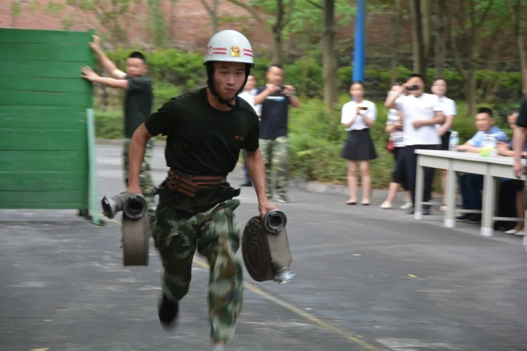 這項比武考驗救援人員是否能快速地將戰斗服和空氣呼吸器進(jìn)行規范佩戴從而進(jìn)入救援工作中,講究時(shí)間快速、佩戴規范。