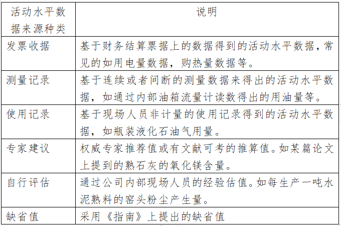 根據活動(dòng)水平數據的獲得方法,本報告對活動(dòng)水平數據的來(lái)源進(jìn)行了分類(lèi),其分類(lèi)方法和說(shuō)明如下表所示: