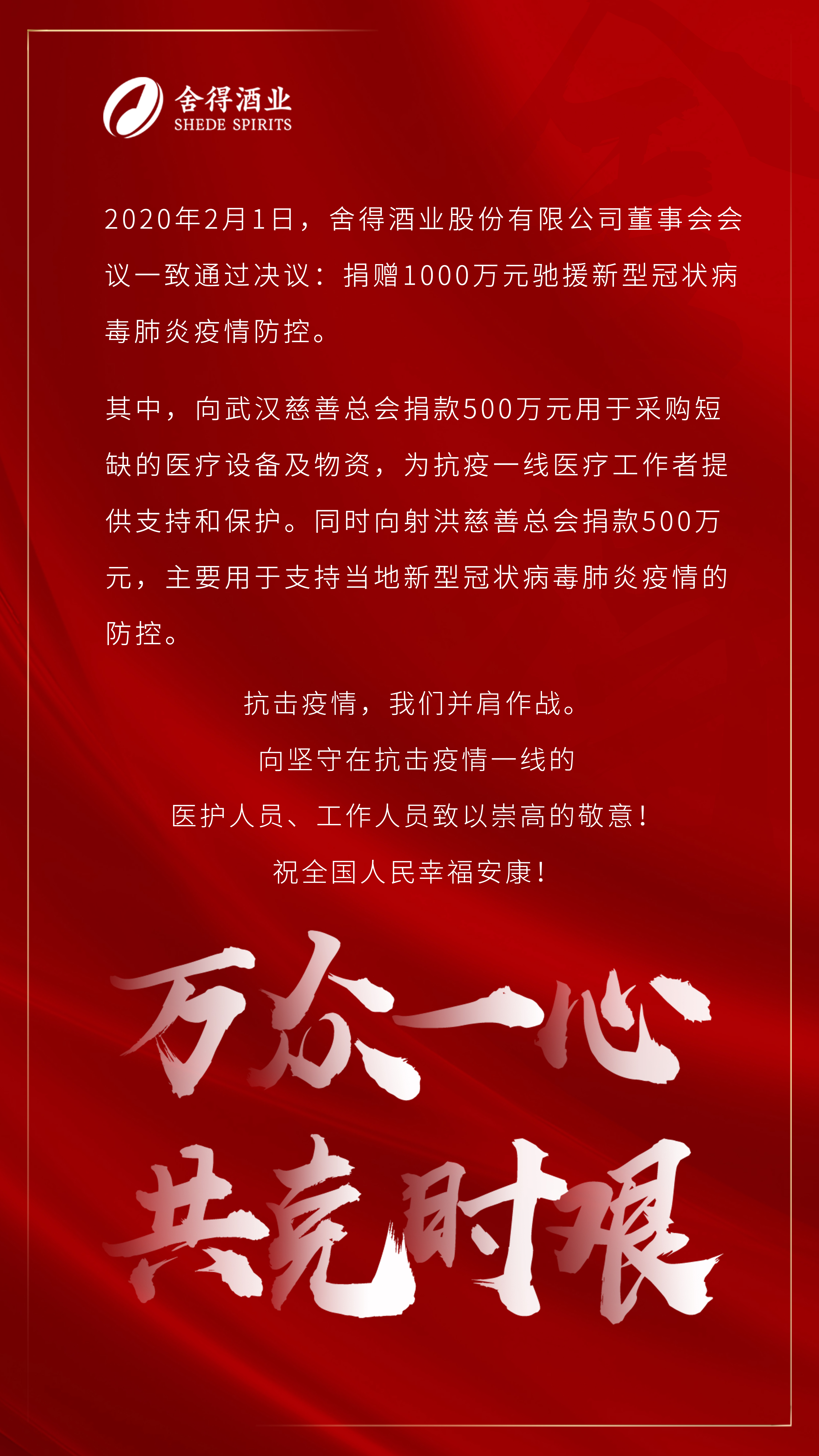 舍得酒業(yè)捐贈1000萬(wàn)元馳援新型冠狀病毒肺炎疫情防控
