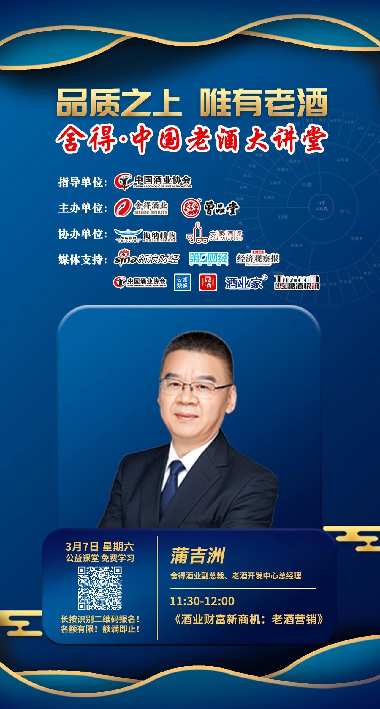 第二位主講人是舍得酒業(yè)副總裁蒲吉洲,他將詳解《酒業(yè)財富新商機:老酒營(yíng)銷(xiāo)》。