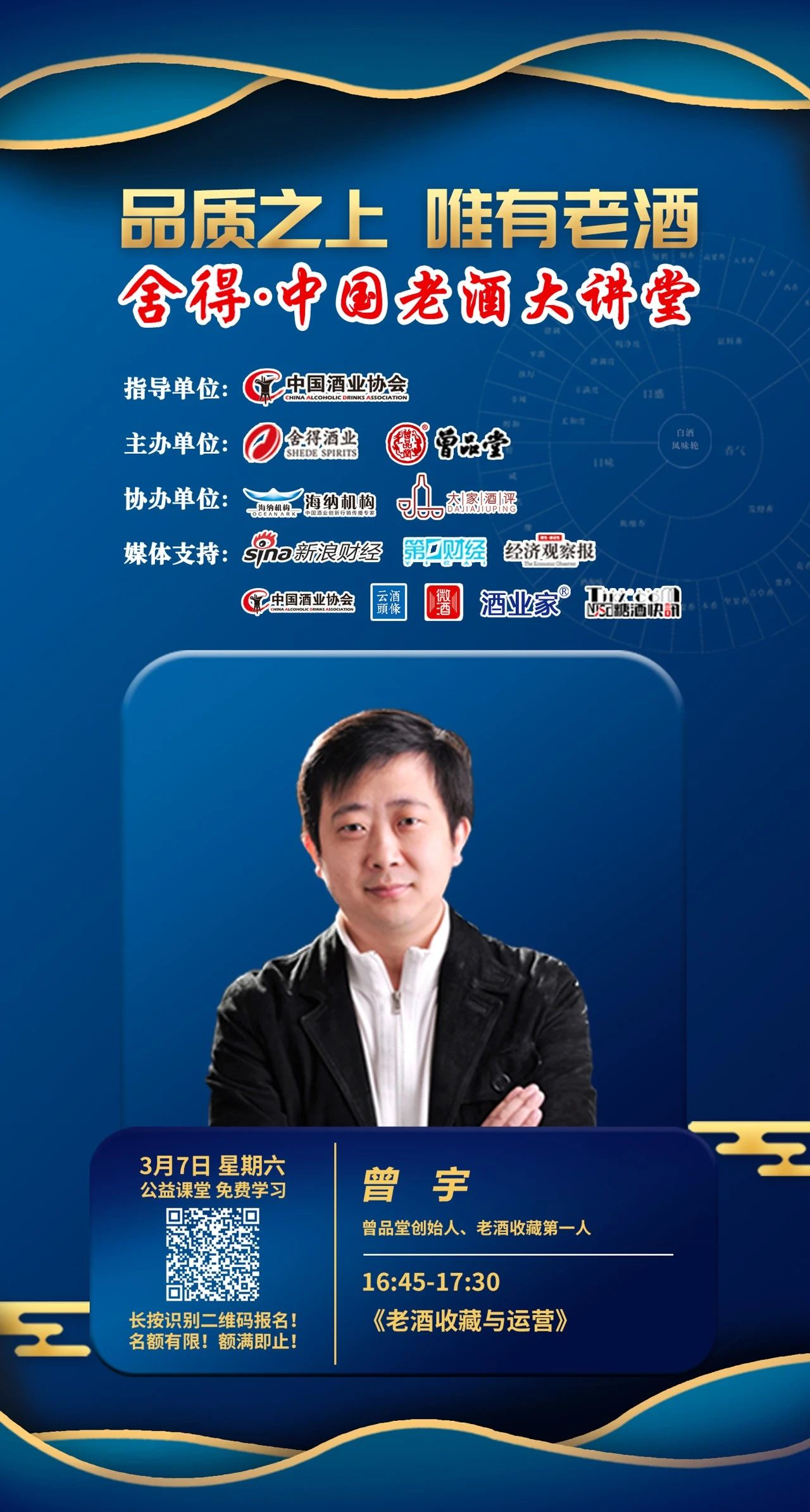 最后,曾品堂創(chuàng )始人、老酒收藏愛(ài)好者、酒文化傳播者曾宇將為廣大愛(ài)好者講解《老酒收藏與運營(yíng)》。