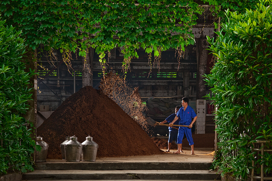“兩緩一清”的釀酒工藝 ●窖內緩慢發(fā)酵——前緩-中挺-后緩落 ●緩火流酒——保證糟醅中不同香味物質(zhì)精確地隨酒精蒸汽分段分類(lèi)餾出 ●一清到底——保證基酒生產(chǎn)“原質(zhì)原味”