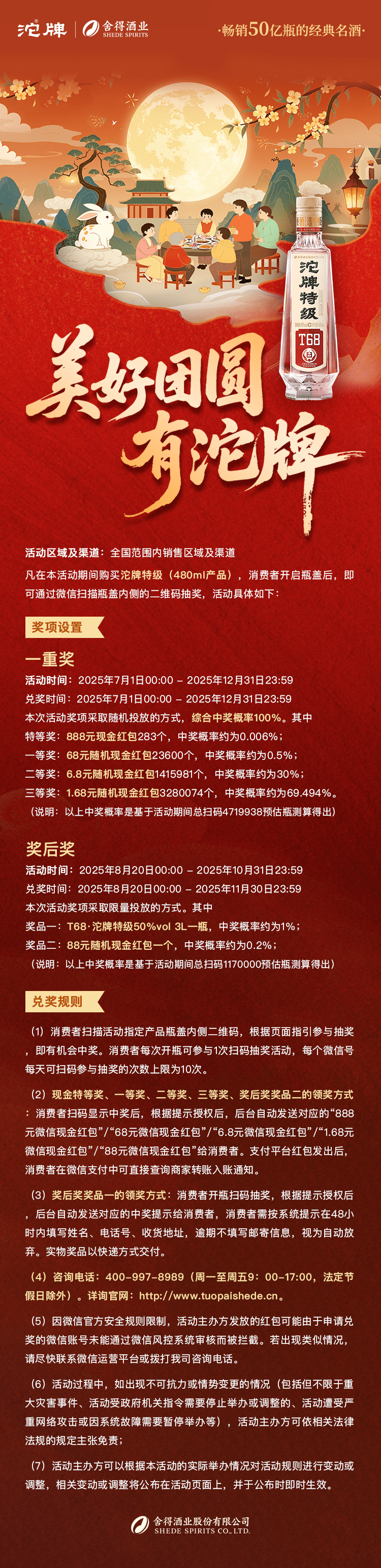 中秋喝特級T68 享豪禮雙倍加碼 掃產(chǎn)品蓋內碼即享2次抽獎機會(huì )