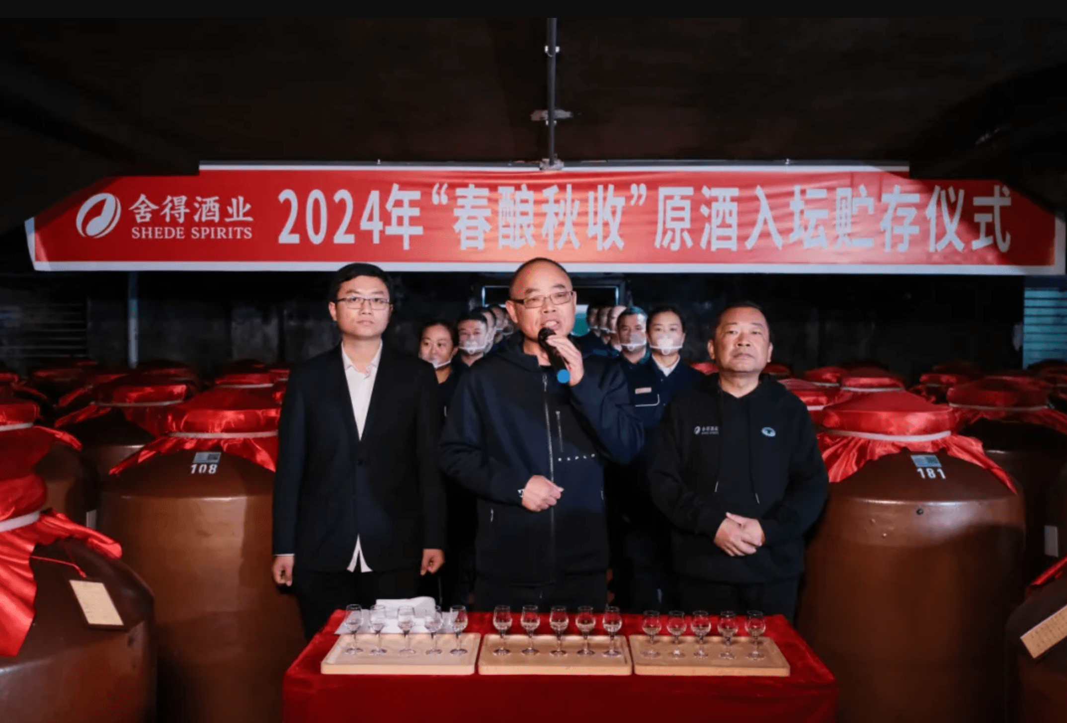踐行老酒戰略,舍得酒業(yè)舉行2024“春釀秋收”原酒入壇貯存儀式