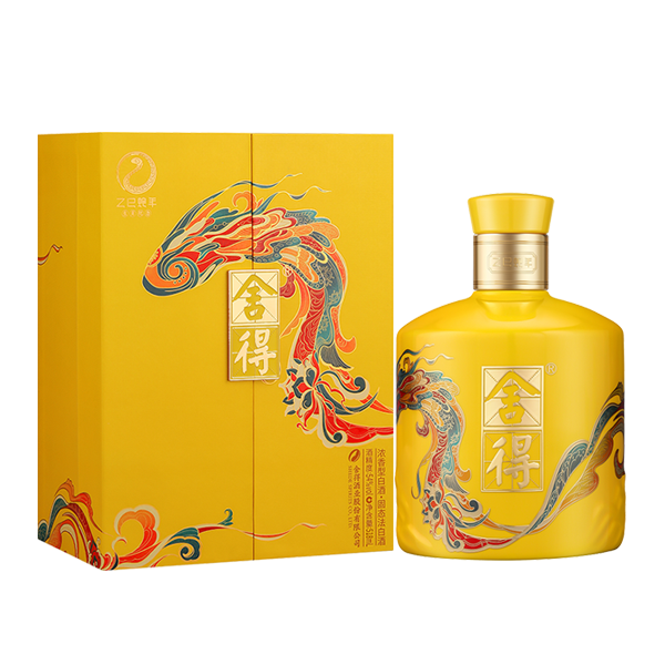 瓶體上蛇形與舍得LOGO的位置正好對應涪江與舍得酒廠(chǎng)的位置與形態(tài),此圖案也代表“生態(tài)舍得、蛇年騰飛”的含義。
